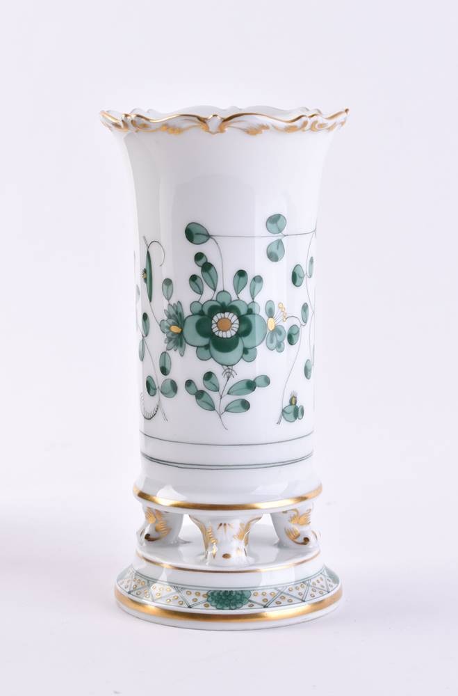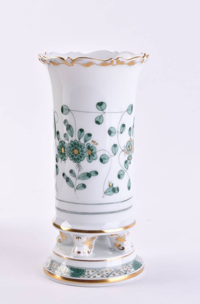 Porzellan, farbig und goldstaffiert, Dekor indisch-grün, Schwertermarke, 1. Wahl, H: 14,5 cm