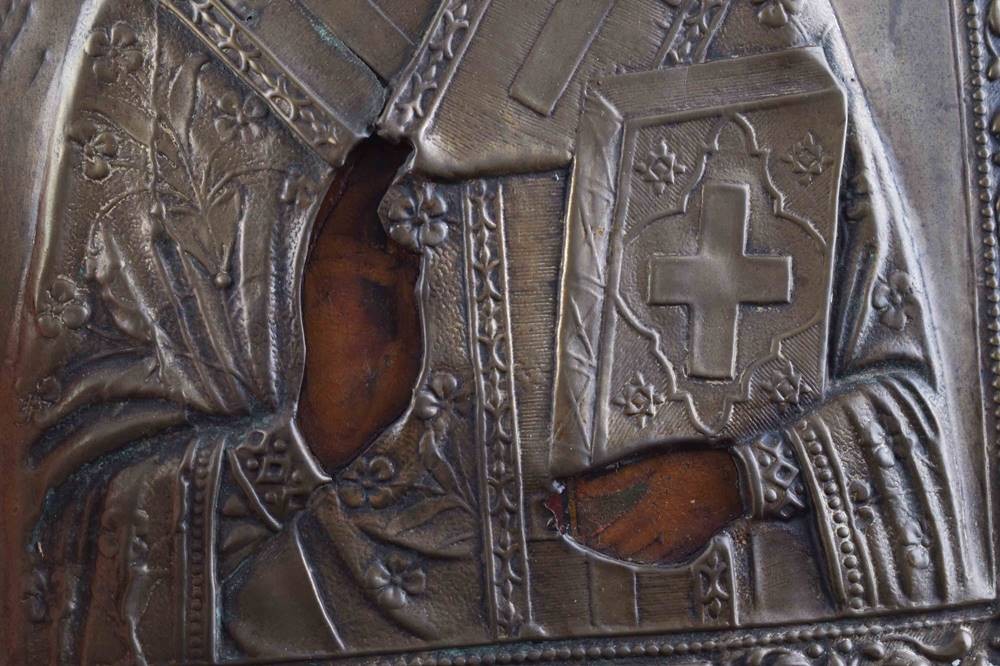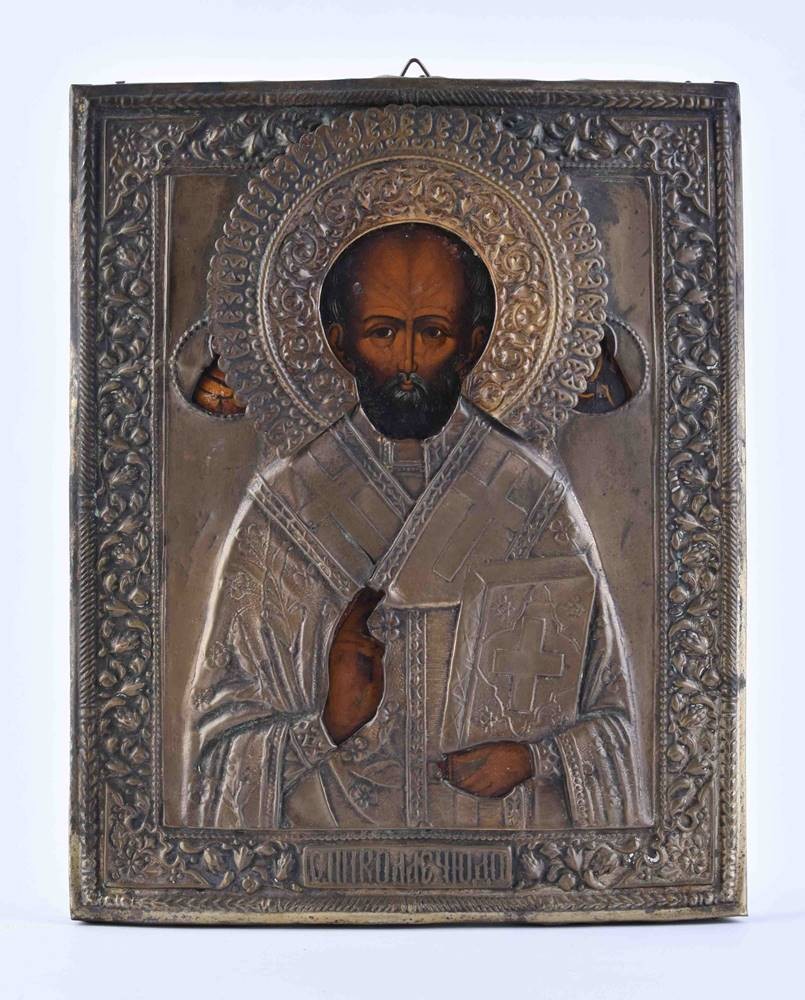 Heiliger Nikolaus, Tempera auf Holz, mit Metalloklad, 22,5 cm x 18 cm