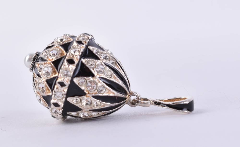 Silber geprüft, emailliert, umlaufend besetzt mit Zirkonia, L: 3,2 cm