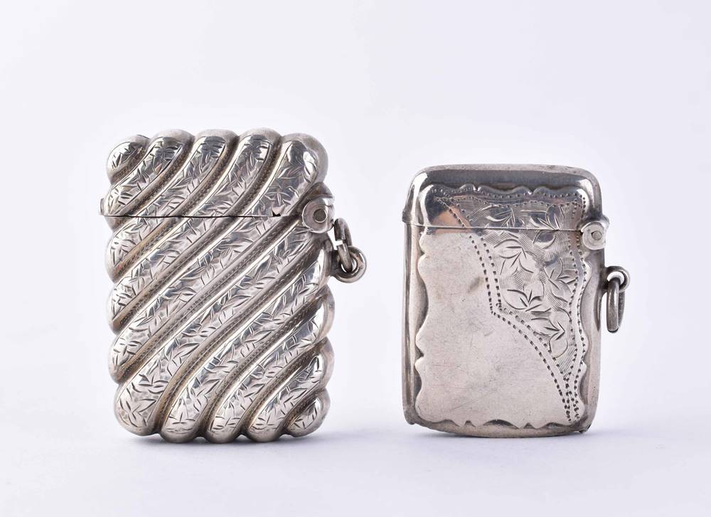 Silber gepunzt, Klappdeckel mit Scharnier, unterhalb Reibefläche für Streichholz, 7 mm x 36 mm x 26 mm und 12 mm x 43 mm x 33 mm, Gesamtgewicht ca. 47 g.