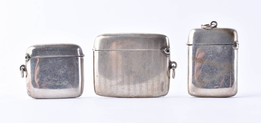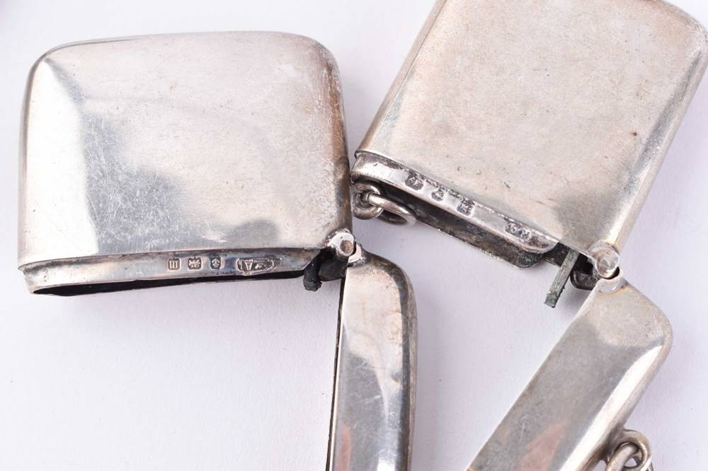 Sterling Silber gepunzt, Klappdeckel mit Scharnier, unterhalb Reibefläche für Streichholz, 7 mm x 38 mm x 40 mm, 8 mm x 45 mm x 33 mm und 7 mm x 44 mm x 54 mm, Gesamtgewicht ca. 77 g.