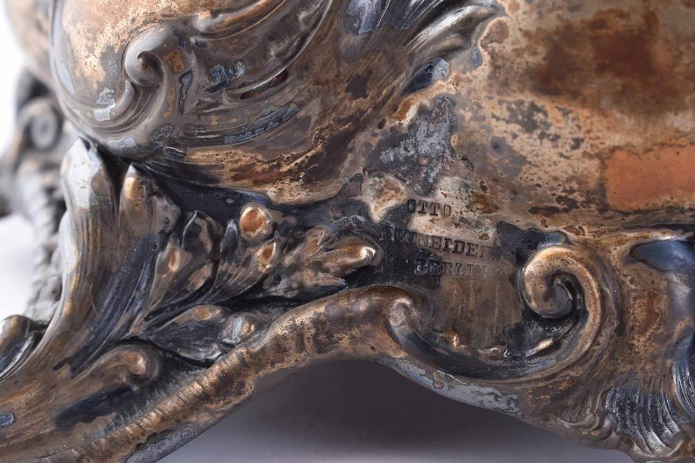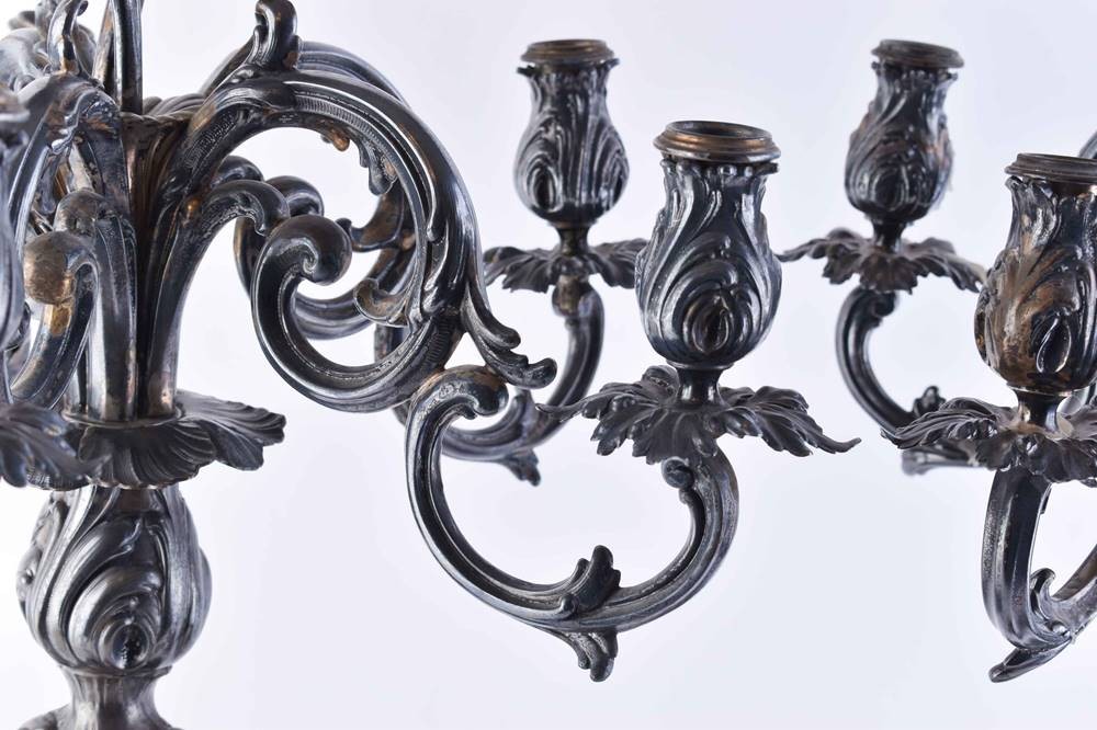 1 Paar fünfflammige Silberleuchter von Otto Schneider Berlin, Silber 800/ 000 gepunzt, Gesamthöhe: 70 cm, ungefüllt, Gesamtgewicht ca. 4460 g.
