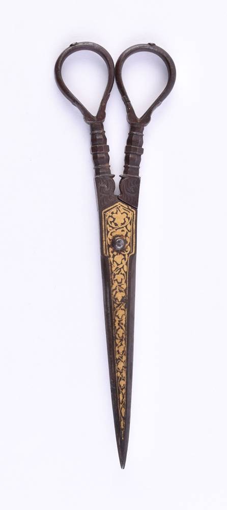 sehr feine Schmiedearbeit, mit floralem Dekor, beidseitig gold tauschiert, L. ca. 17 cm